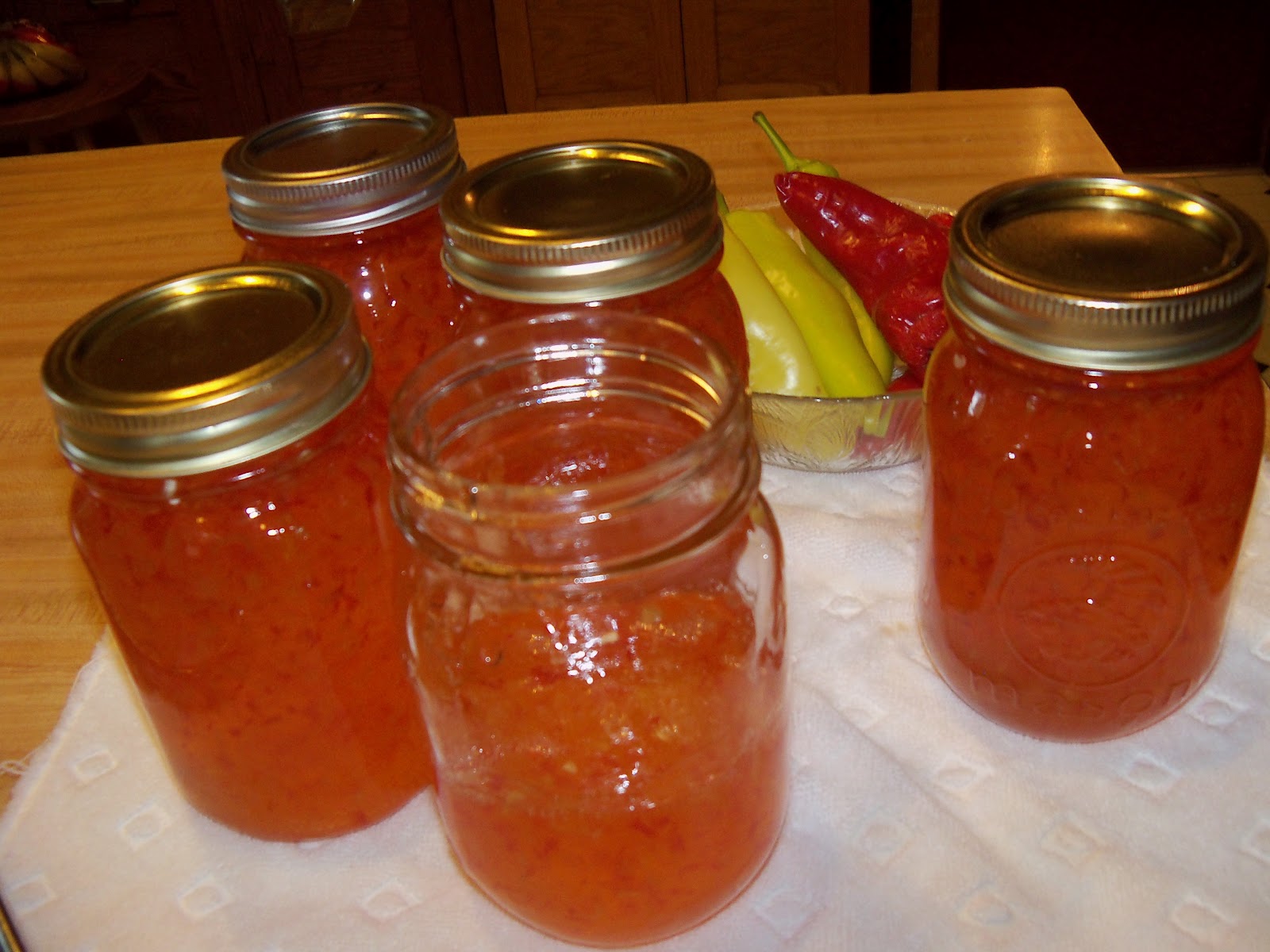 I just finished making a batch of this yummy stuff. My favorite use for it is mixed with cream cheese and spread on crackers as a snack or appetizer, but it’s very versatile. You can warm it and brush on boneless skinless chicken breasts or pork chops while they’re baking. Spread it on a ham, pork or chicken sandwich. Add it to a stir fry for that sweet/sour thing. Mix with mayo for a great topping for a turkey sandwich. And here’s one I found in Chile Pepper Magazine – mix melted butter, bourbon, honey and pepper jelly together and spread over salmon filets, then bake. YUUUMMM.